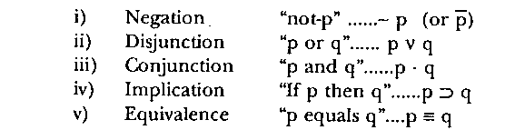 The five basic forms of connection between propositions are as follow (where p and q are two propositions):