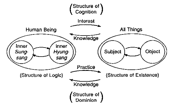 We should keep in mind, however, that in the give-and-receive action between the Inner Sungsang and Inner Hyungsang, Heart is the center. This means that in the formation of Logos (Word), Heart stands in a position higher than reason and mathematical principles. Therefore, originally, human being is not merely a being of Logos (i.e., a rational or law-abiding being), but more essentially a being with pathos (i.e., a being with heart, or an emotional being). Thus, even if thinking does not have mathematical strictness. if love is contained in thinking, the speaker's meaning can be conveyed sufficiently well to others.