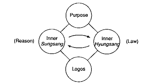 The next question to be considered is that of law and freedom in thinking. If thinking follows laws, what kind of freedom is there in thinking? As mentioned before, the Inner Sungsang and the Inner Hyungsang engage in give-and-receive action, and Logos appears. Reason within the Inner Sungsang has freedom. On the other hand, laws within the inner Hyungsang are already determined, and cannot be changed.
