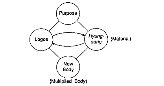 Another problem is that he held that Idea develops itself. From the perspective of Unification Thought, idea belongs to the Inner Hyungsang in the structure of the Original Image; as the functions of intellect, emotion, and will-particularly reason within the function of intellect-act upon the idea centering on purpose, the Logos (conception or plan) is formed, which becomes a new idea. Accordingly, Logos, or Idea, is something formed within the mind of God, and there can never be the case that Idea develops by itself.